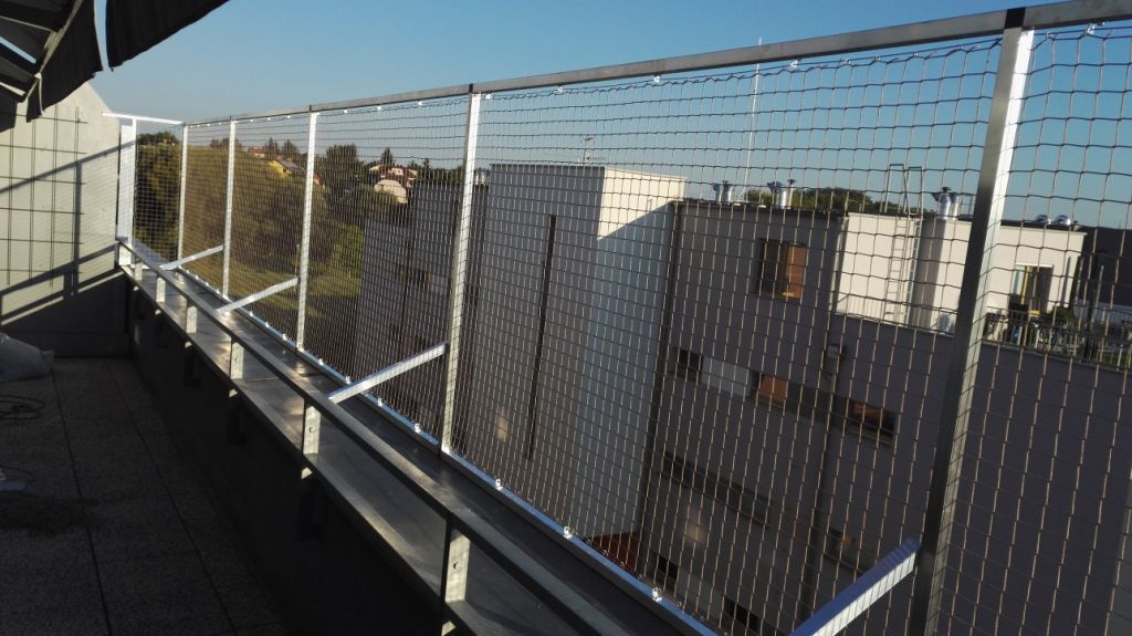 okna, balkony, lodžie s vrtaným kotvením a lankovým rámem z pozinkované nebo nerezové oceli